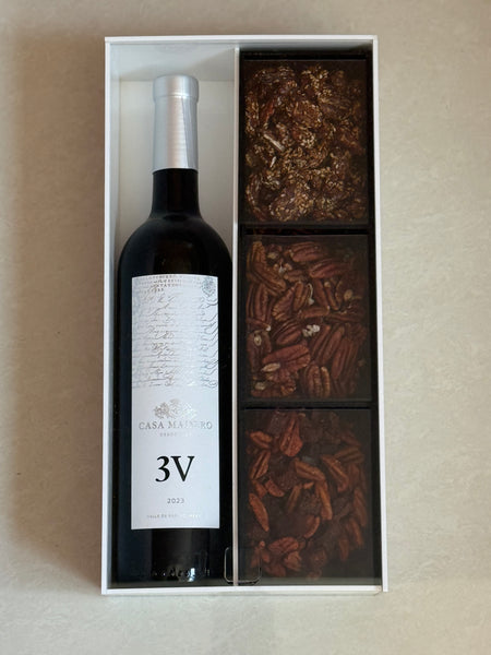 Una caja de regalo sofisticada elaborada en acrílico blanco con tres compartimentos interiores de acrílico negro, con tapa de acrílico transparente.